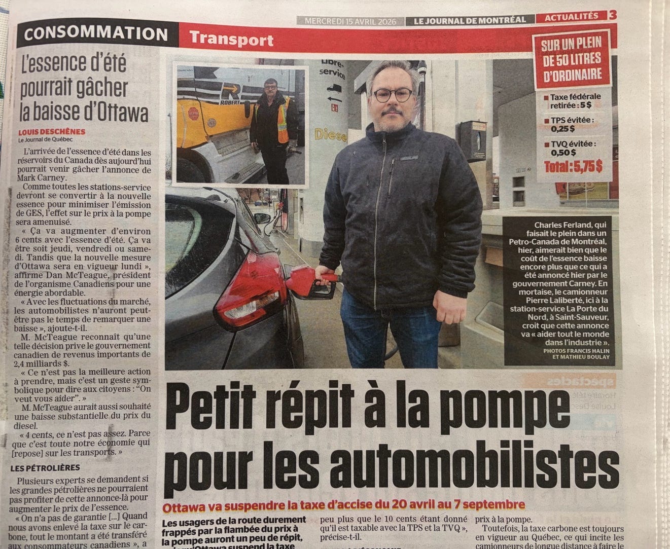 A report in La Presse began as follows: “A breath of fresh air at the pump: after tightening their belts in the face of rising gas prices, the motorists interviewed see a return to normal, with the cost per litre expected to drop as early as next Monday.”